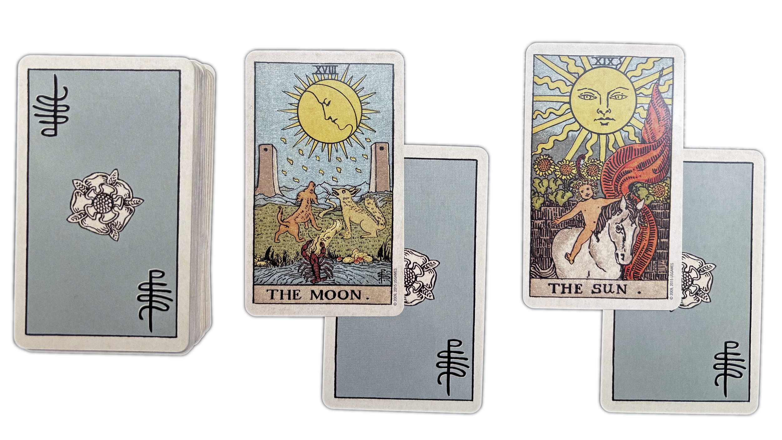 For this reading you will be using the two luminary cards as significators: The Sun and The Moon; The Sun will tell you what you need to know, The Moon will show you what is hidden.
